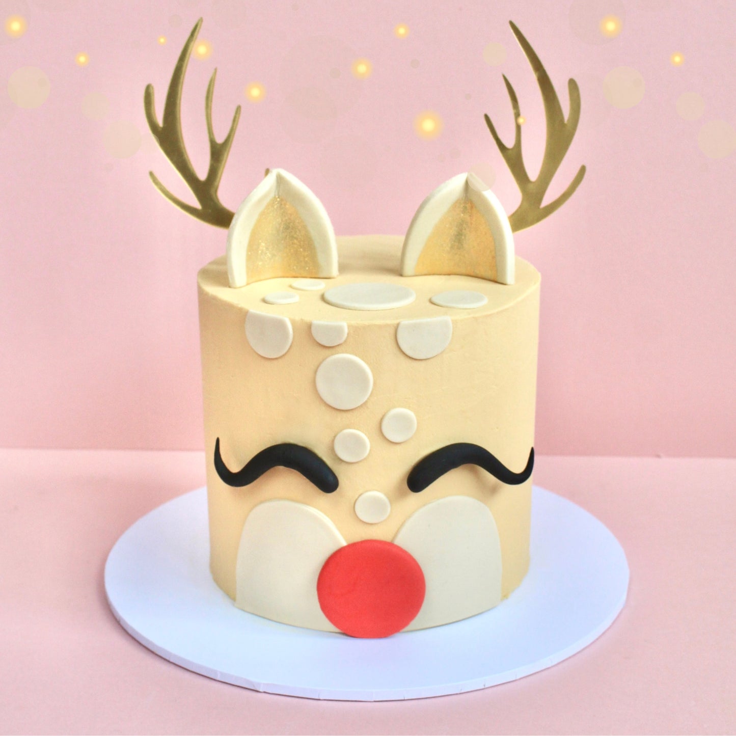 Our Rudolph reindeer Christmas cake is here. A great centrepiece for the Christmas table. This gorgeous buttercream cake is handcrafted with handmade sugar decoration details and antler toppers. Available in Salted Caramel layer cake or Madagascan Vanilla & Raspberry layer cake.